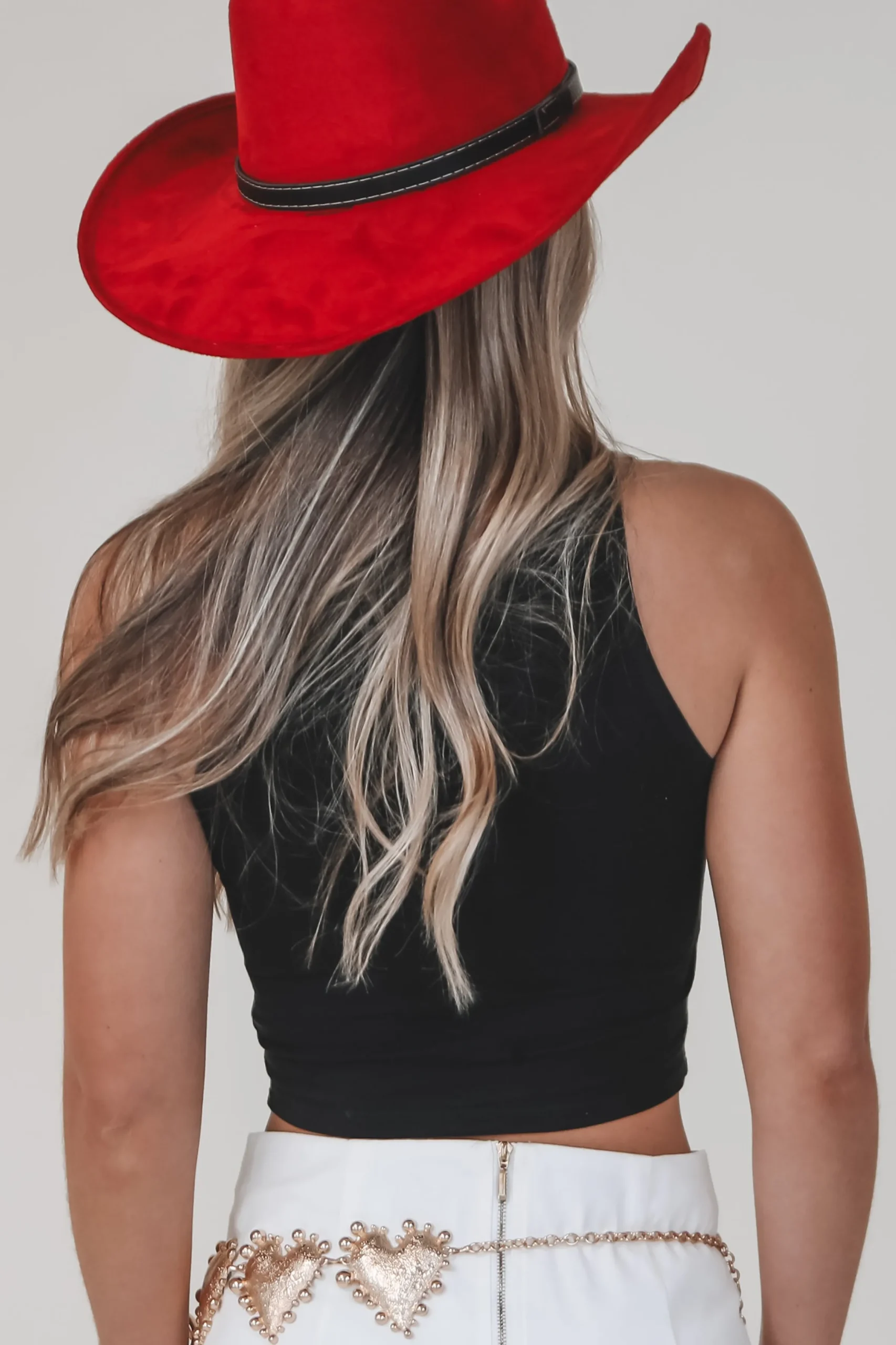- Black cropped fitted high neck graphic tank, front says Cowboys u0026amp; Tequila, back is blank