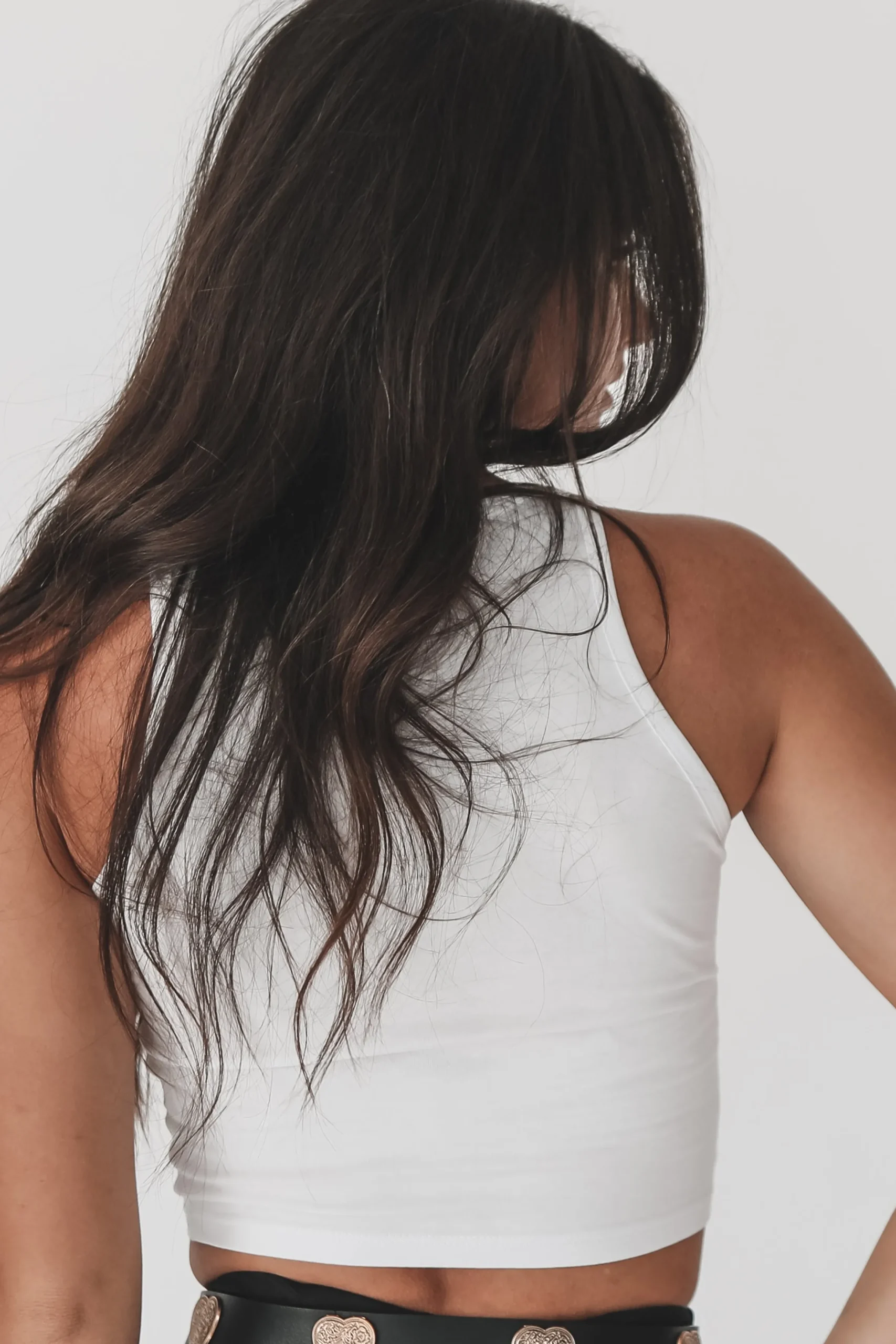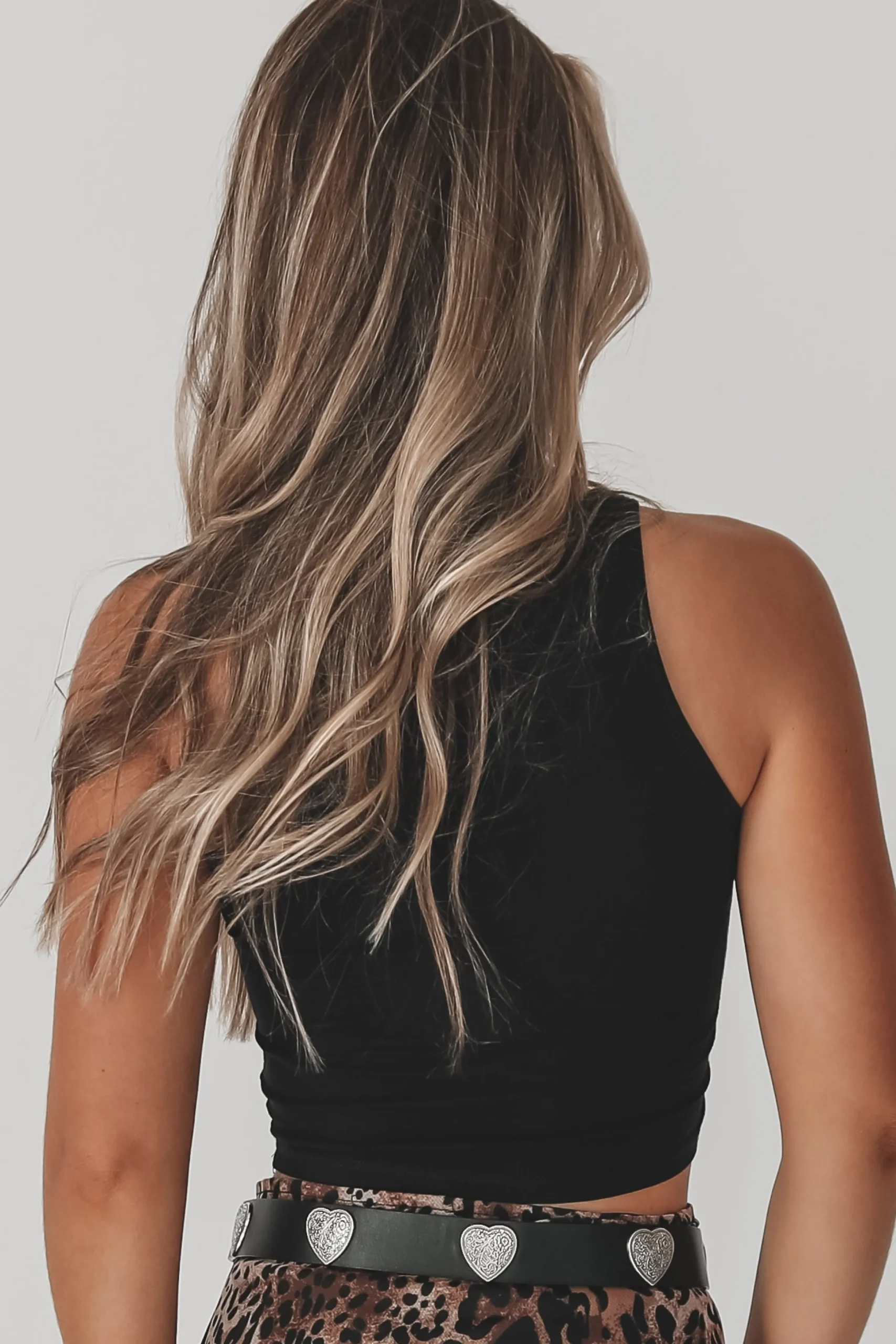 - High neck sleeveless graphic cropped top, back is blank
