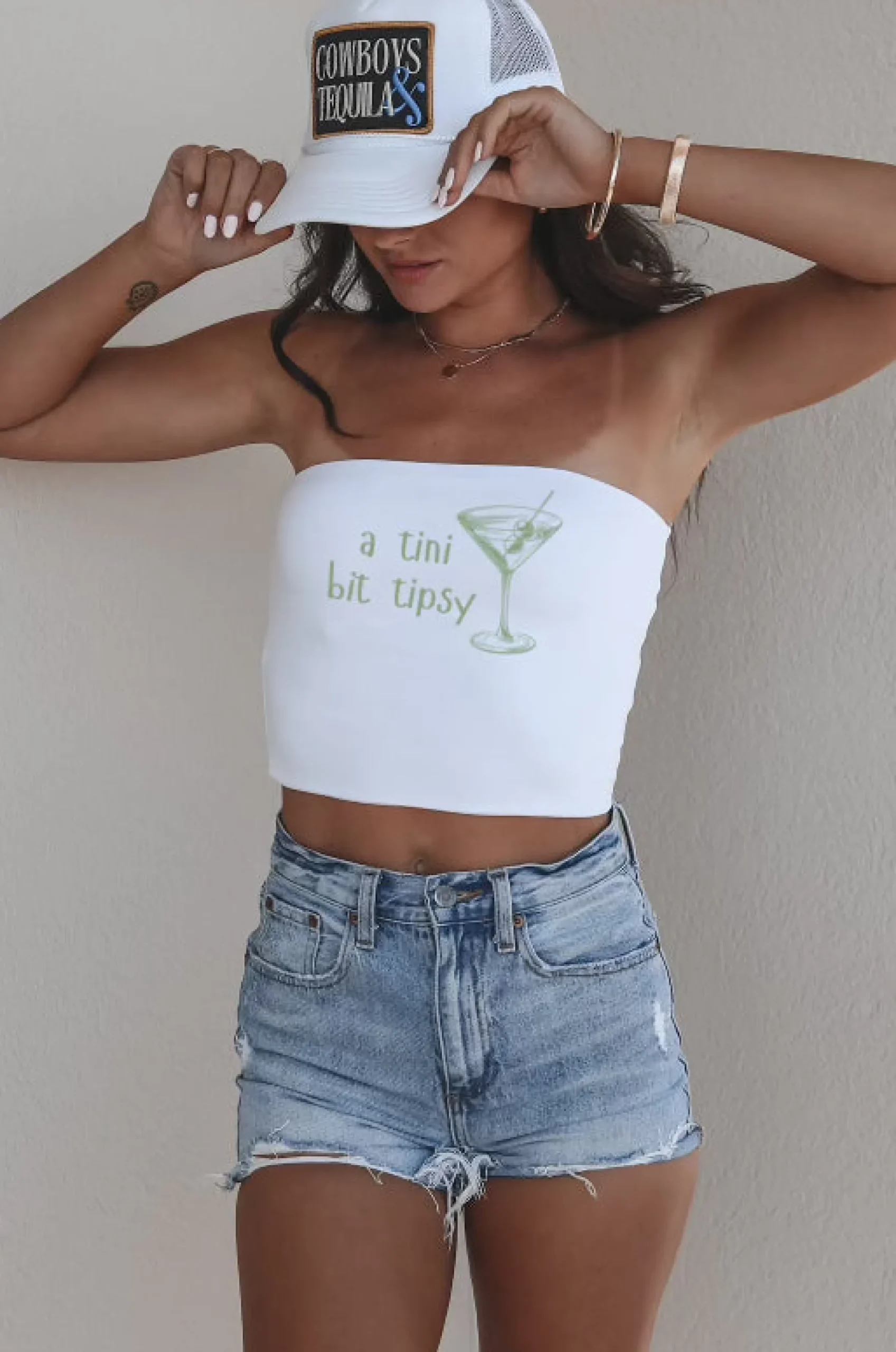 - Double lined strapless tub top Martini graphic top, back is blank