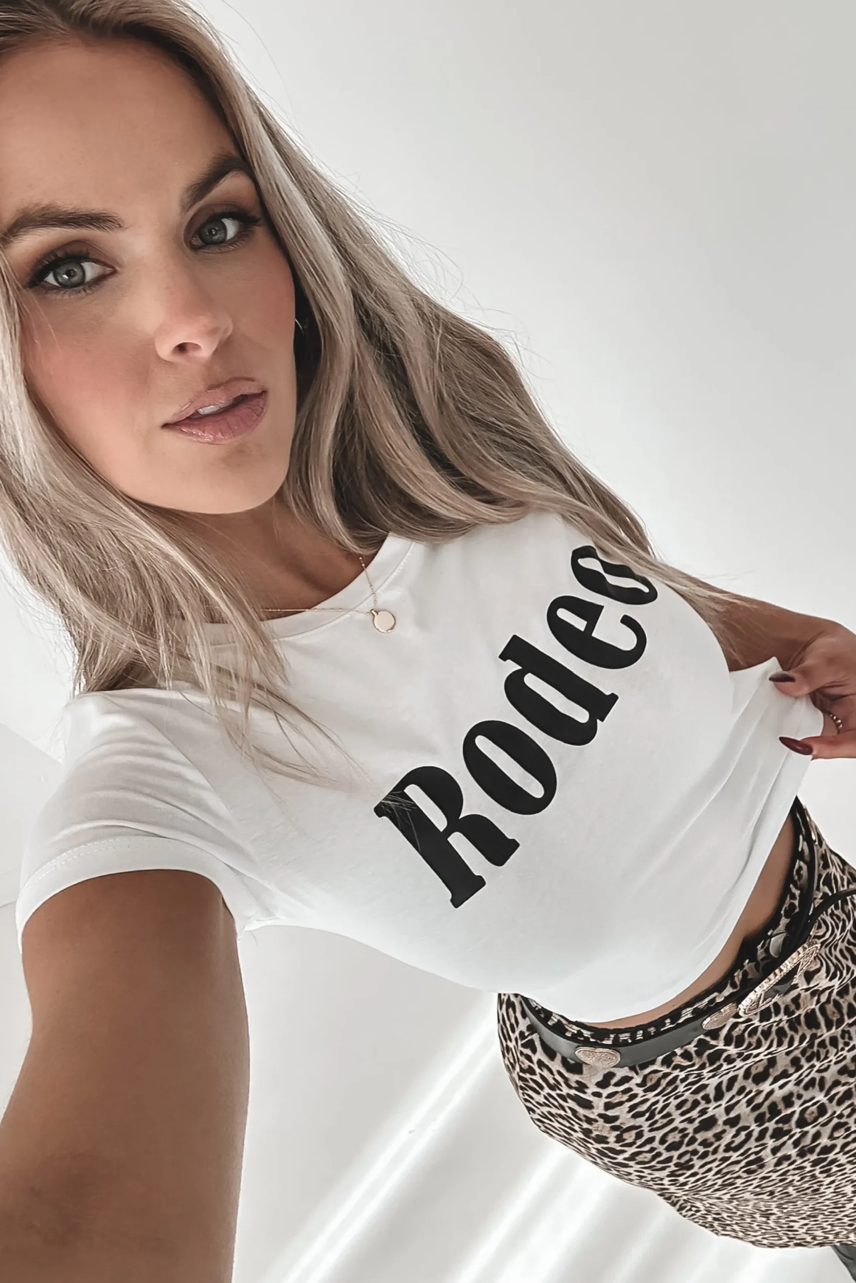 - Short sleeve cropped babydoll Rodeo tee, back is blank